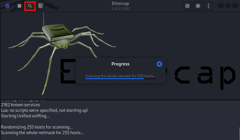 在kali中,使用命令sudo ettercap -G打开ettercap。