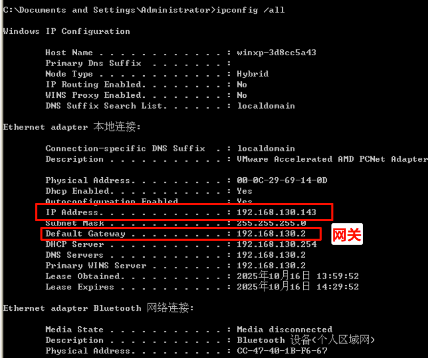 靶机 ipconfig /all