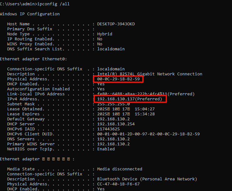 验证机 ipconfig /all