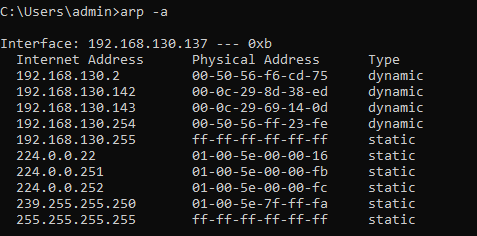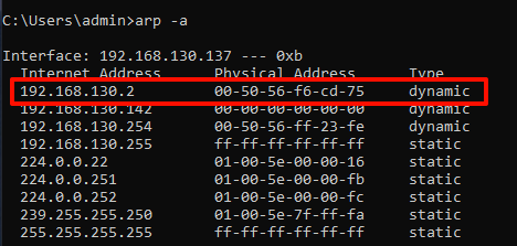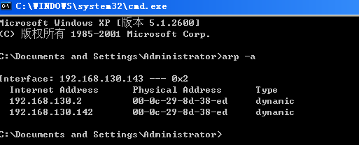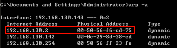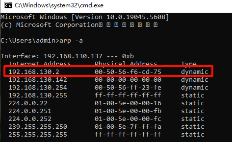 利用命令arp -a查看靶机被攻击前的arp信息
