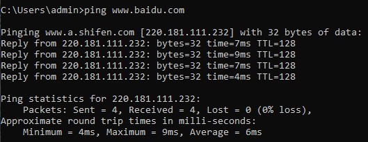 尝试ping百度,显示超时。