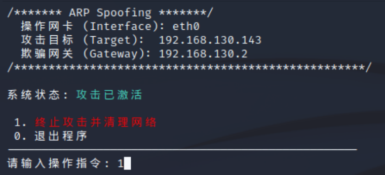 输入1即可停止攻击