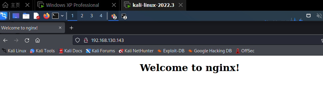 localhost或127.0.0.1,应能看到nginx欢迎页面 。 - 在攻击机和靶机上分别使用