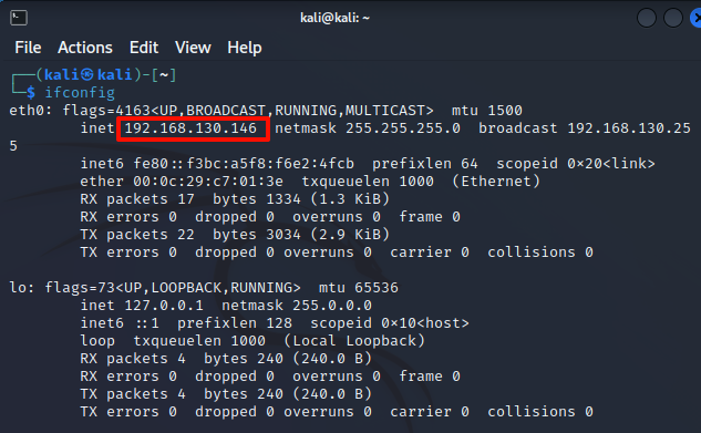 ifconfig/ipconfig查看各自IP地址 。 - 在攻击机上,ping靶机IP,确保网络互通。