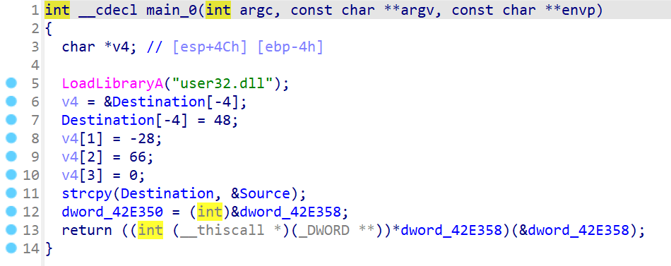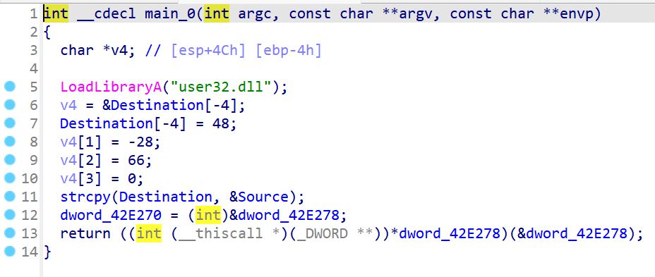void main(int argc, char* argv[]) { LoadLibrary("user32.dll");