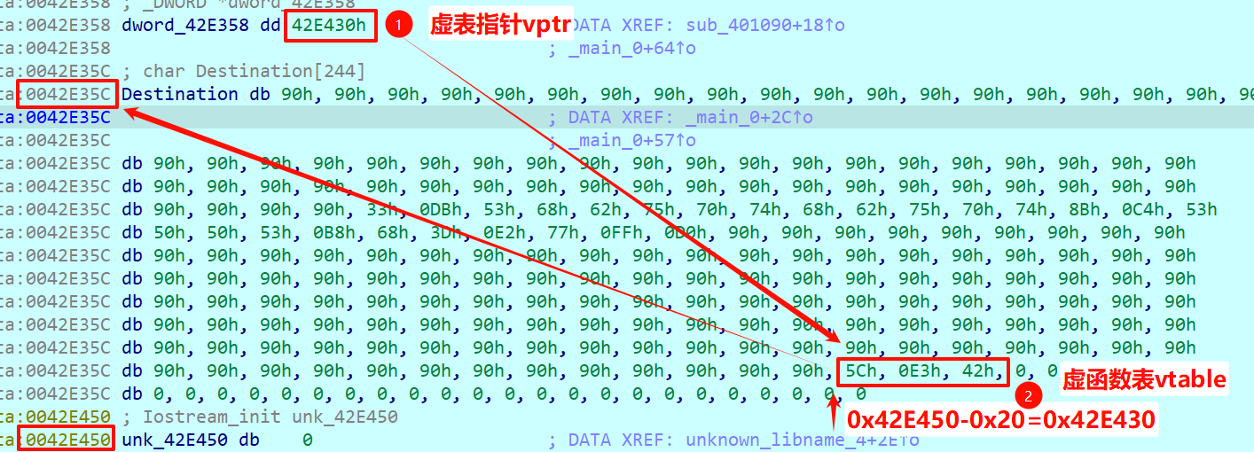 需要从42EB14覆盖掉vptr,0x42EB58-0x42EB14=68