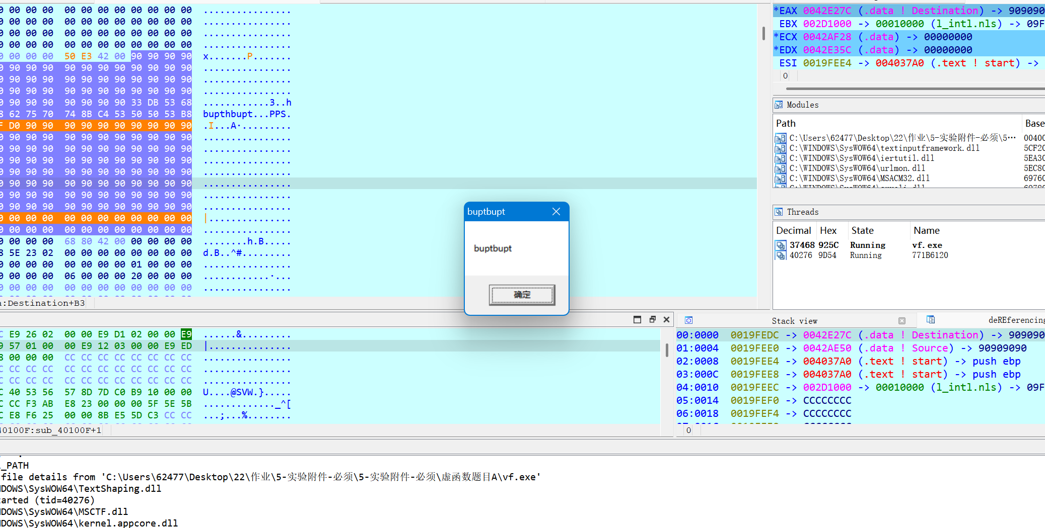 由于我的vc++6.0是安装在xp上的,编译出的exe与原本给的exe地址上有差别,这里按xp上的再做一次。