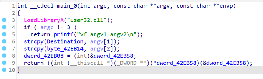 if (argc == 3) { strcpy(overflow.buf, argv[1]);