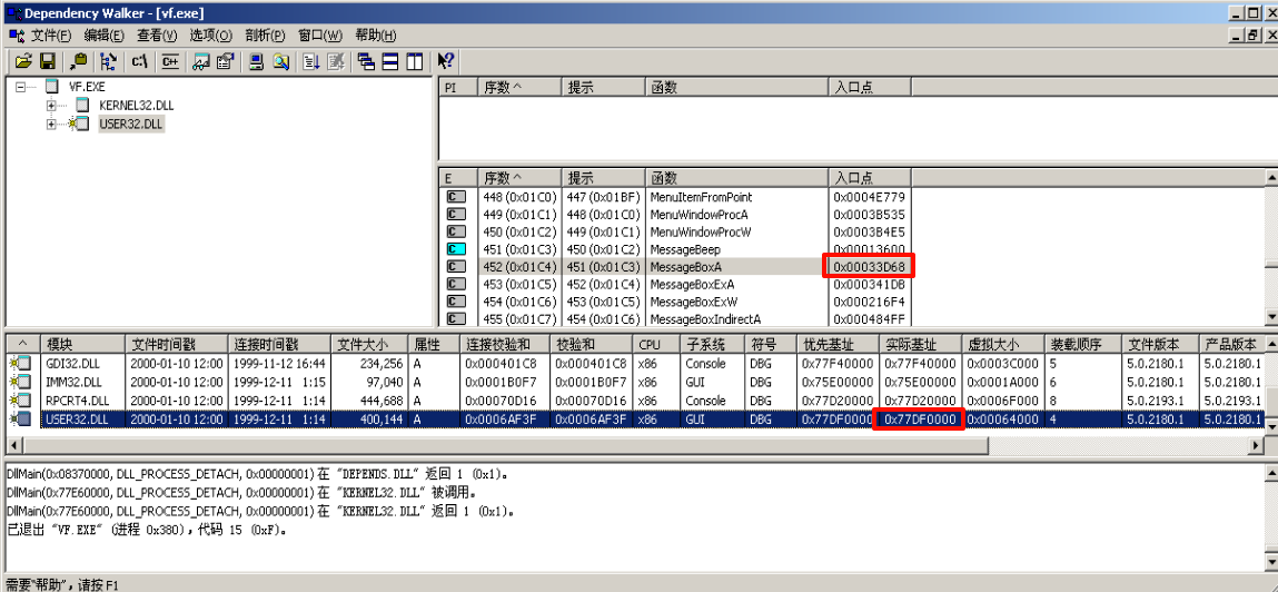 MessageBoxA还是原来的地址